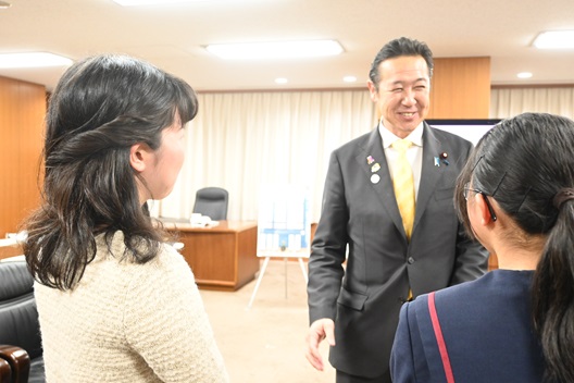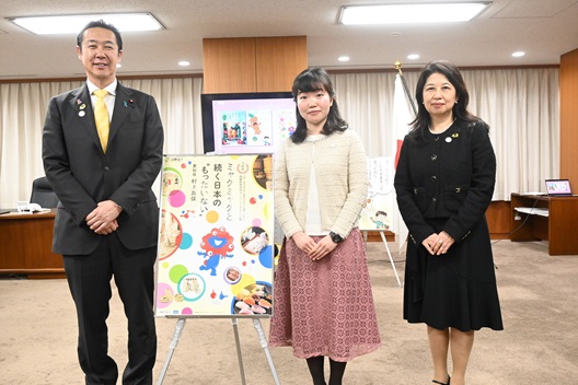 令和8年1月16日、黄川田大臣は令和7年度「めざせ!食品ロス・ゼロ」川柳コンテストの表彰式に出席し、「ミャクミャクと続く日本の"もったいない"」で内閣府特命担当大臣(消費者及び食品安全)賞を受賞した、村上(むらかみ) 真保(まほ)さんに表彰状を授与しました。