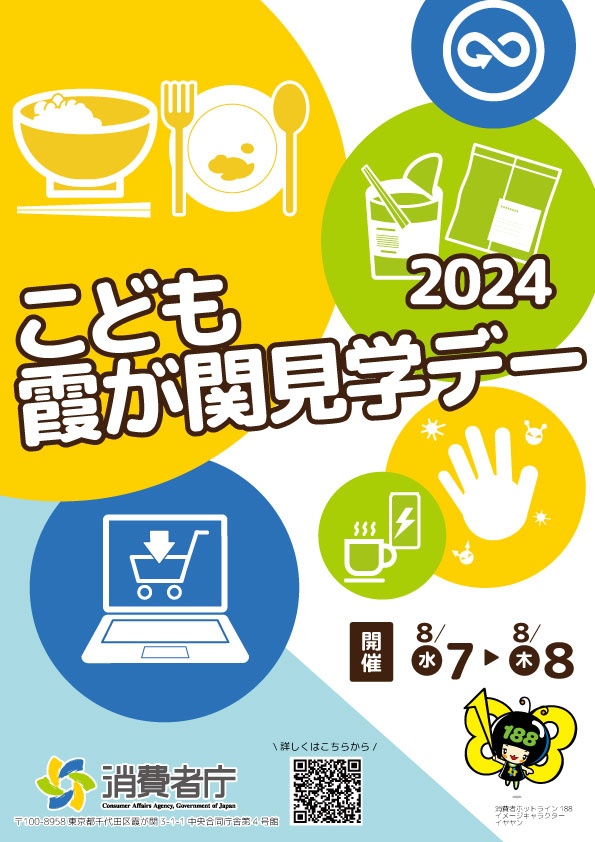 「こども霞が関見学デー」は、霞が関に所在する消費者庁をはじめとした各府省庁等が連携し、業務説明や展示等を行うことにより、夏休み期間中にこどもたちに広く社会を知ってもらうこと、政府の施策に対する理解を深めてもらうこと、活動参加を通じて親子の触れ合いを深めてもらうこと、を目的とした取組です。今年度も消費者庁でも以下のとおり開催します。