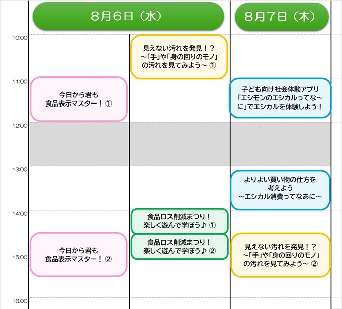 消費者庁では、「エシカル消費」、「食品ロス削減」、「食品安全」、「食品表示」といった身近なテーマについて、クイズやゲーム、実験などを取り入れ、楽しく学べるプログラムをご用意しています。