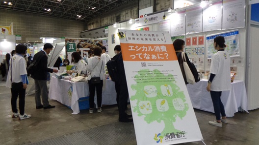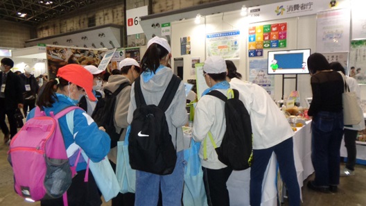消費者庁ブースには大勢の小学生から大学生までの学生、事業者や事業者団体、一般消費者の方々にお越しいただきました。「エシカル消費とはどのようなことか?」といった質問のほか、「エシカル消費という言葉を初めて知った」、「エシカルという言葉は知っていたが内容は知らなかった」、「日頃から購入している商品にマークやラベルが付されていることを知った」、「明日からエシカル消費をやってみたい」という感想など、様々な声をいただきました。