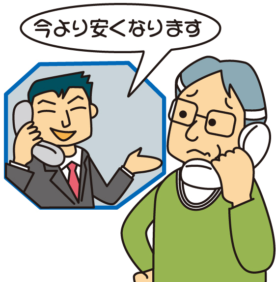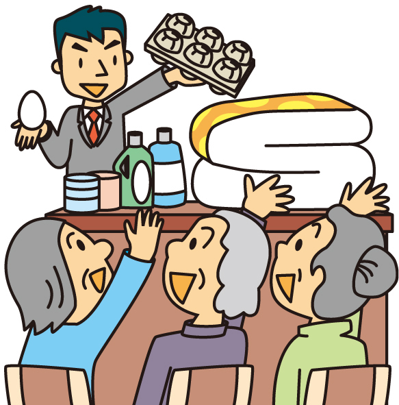 イラスト集(2)-6 お金、支払い方法、取引方法、金融、司法関係等 イラスト集トップへ 前へ 1 2 3 4 5 6 7 次へ クーリング・オフ クーリング・オフ 電話勧誘を受ける人 電話をする問題事業者 公的機関をかたる電話 マイナンバー関連の不審な電話 訪問購入(訪問による強引な買取り) 展示会販売 催眠(SF)商法 名義貸し、空クレジット イラスト集トップへ 前へ 1 2 3 4 5 6 7 次へ 担当:消費者教育推進課 おすすめコンテンツ 消費者教育推進会議 消費者教育ポータルサイト(教材・取組・講座検索) 食べもののムダをなくそうプロジェクト~食品ロス削減のため、できることから始めよう~ ページの先頭へ