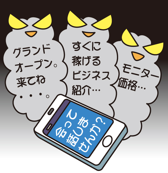 イラスト集(3)-7 商品・サービス(金融関係を除く)等 イラスト集トップへ 前へ 1 2 3 4 5 6 7 8 次へ 71.心あたりのない請求 72.SNSによる勧誘 73.迷惑メール(アダルト・副業等) 74.長時間にわたるスマホ利用 75.機能性表示食品 イラスト集トップへ 前へ 1 2 3 4 5 6 7 8 次へ 担当:消費者教育推進課 おすすめコンテンツ 消費者教育推進会議 消費者教育ポータルサイト(教材・取組・講座検索) 食べもののムダをなくそうプロジェクト~食品ロス削減のため、できることから始めよう~ ページの先頭へ