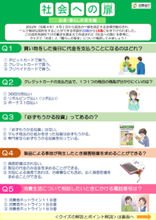 社会への扉 ―12のクイズで学ぶ自立した消費者―(高校生(若年者)向け消費者教育教材 生徒用教材・教師用解説書)
