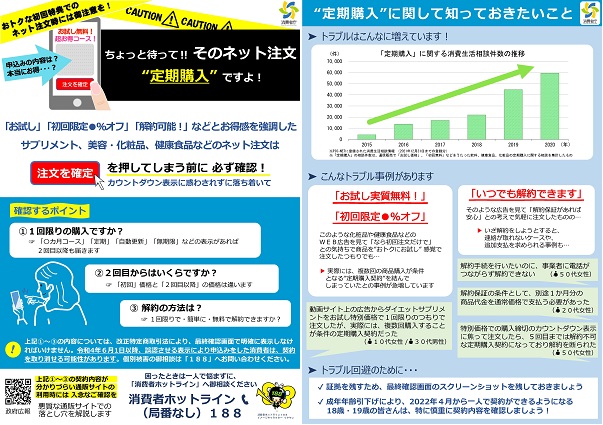 インターネット通販で「困ったな」と思ったら消費者ホットライン(188番)までお電話ください。