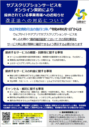 事業者向け周知:「サブスクリプションサービスをオンライン契約により提供されている事業者様へのお知らせ」