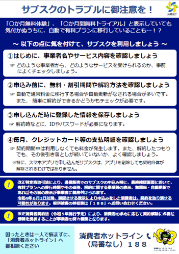 消費者向け周知:「サブスクのトラブルに御注意を!」