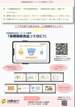 保健機能食品についての動画をご紹介するリーフレットを作成いたしましたので、ご活用ください。