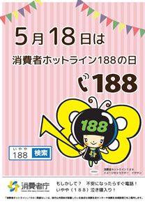 5月18日を「消費者ホットライン188の日(いややの日)」として記念日制定しました。