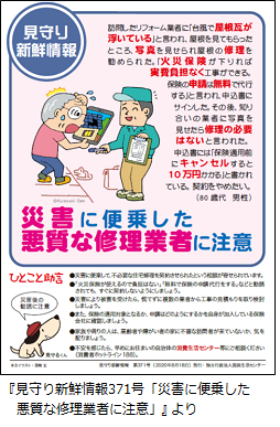 「見守り新鮮情報」は、全国の消費生活センターなどに寄せられた情報から高齢者や障がい者の方が警戒すべき悪質商法などについて、国民生活センターが発信している情報です。