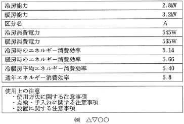 - エアコンディショナーごとに、消費者の見やすい箇所にわかりやすく記載する。